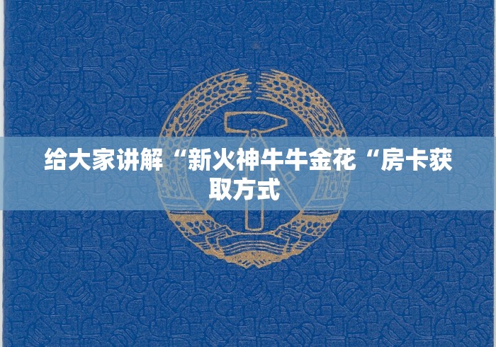 2026科普一下“ 新道游牛牛金花 “获取房卡教程